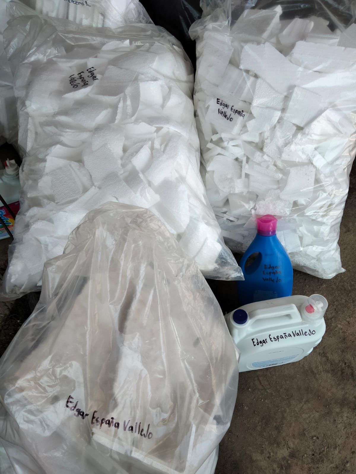 Junta el unicel limpio, preferentemente sin residuos de comida o suciedad. Puedes usar bandejas, empaques de electrodomésticos, vasos, etc.